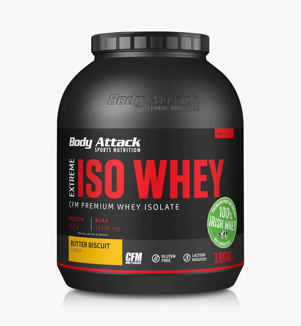 The result is Body Attack Extreme Iso Whey. Our premium protein powder has an isolate percentage of more than 90%, is manufactured gently, is low in lactose and aspartame-free, and is extremely well digestible. Which Whey isolate can do more? Probably none. Perfect for you and your goals.