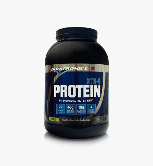 XTR-4 Protein is a complete engineered protein blend consisting of a precise mixture of whey protein concentrate, Micellar Casein, egg albumen and Soy protein isolate.