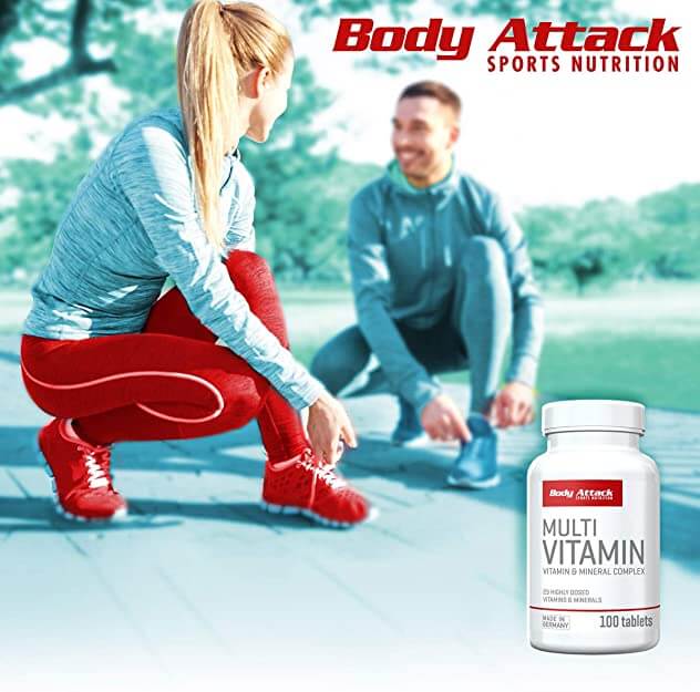 Therefore, vitamins and minerals are often not sufficiently supplied through the diet. Alternatively, people with the increased requirements can be supplied with these through dietary supplements like Body Attack Multi-Vitamin. There can be increased requirements particularly in certain situations of life. This is the case with children, adolescents, and senior citizens if their diet is unbalanced. Likewise, people on a diet with reduced calorie intake have special requirements. Furthermore, there is an increased need for vitamins and minerals during pregnancy, diseases, increased stress, and after operations. The Body Attack Multi-Vitamin is useful as a dietary supplement even in case of increased energy requirement. This may be the case especially for athletes and strenuous occupations.