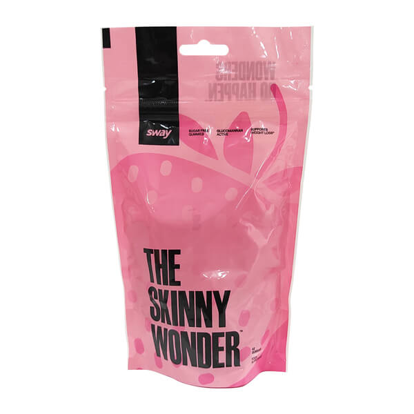 Sweetener (maltitol syrup E965), gelling agent, glucomannan, acidulant (citric acid E330), flavoring (strawberry aroma), coating agent (vegetable oil: coconut oil), anti-caking agent (carnauba wax), colorants (E120 carminic + E163).
